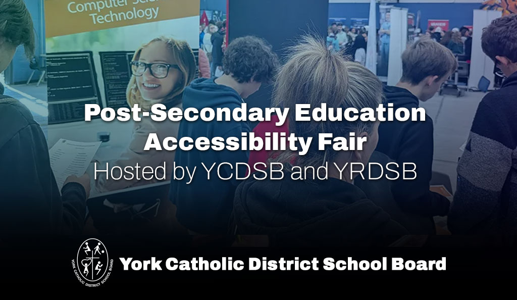 The York Catholic District School Board, in partnership with York Region District School Board, is pleased to invite you to attend the Post-Secondary Education Accessibility Fair. This event is specifically designed for students and/or families seeking information about how to access mental health, learning, or physical supports within a college/university or skilled trade. Attendees will have the unique opportunity to connect directly